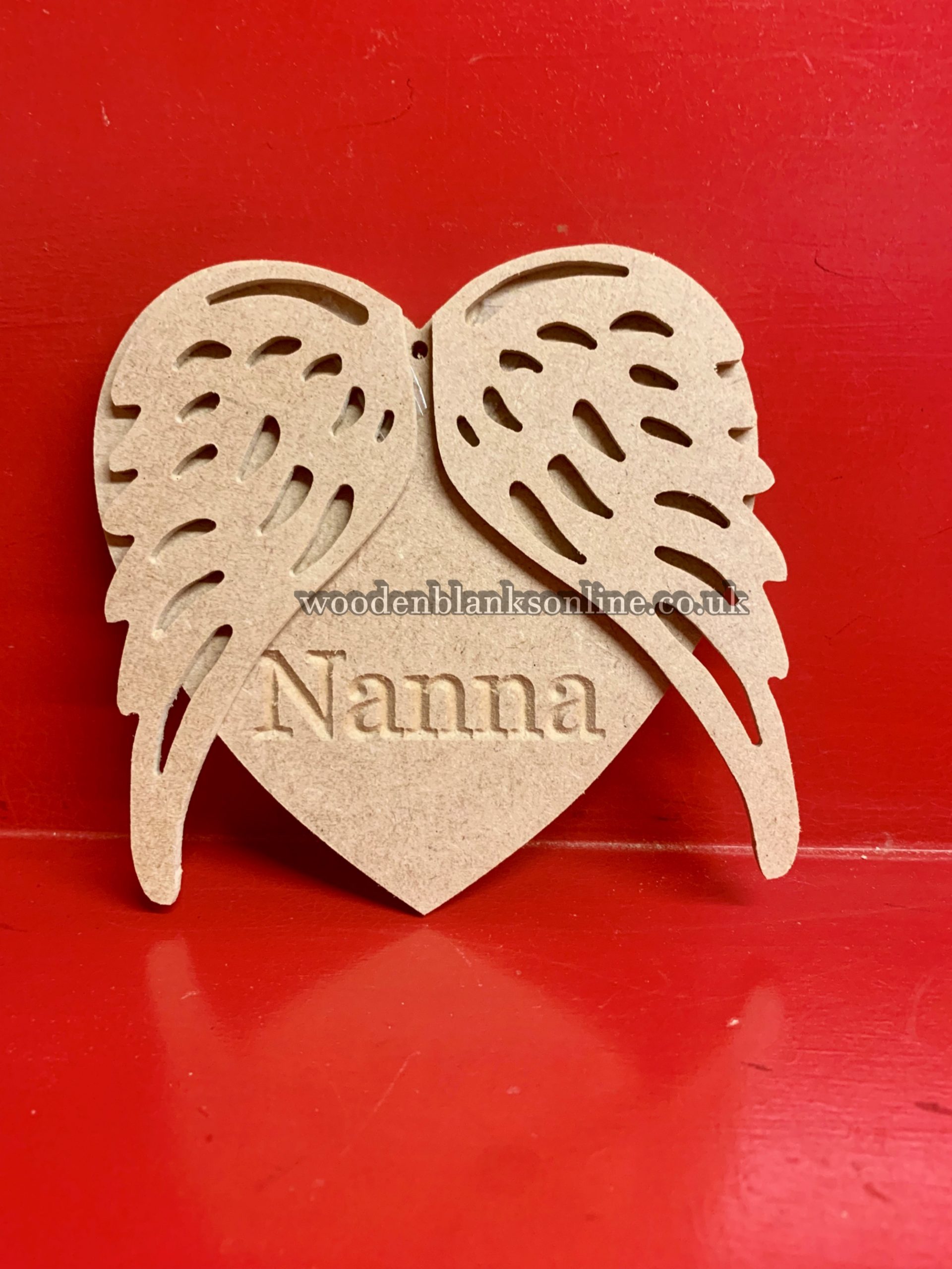 125mm x 6mm mdf heart engraved Mam,with 3mm angel wings overlay